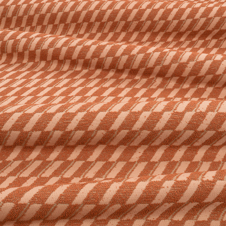 Originally designed in the Kirkby studio, this 75% recycled polypropylene outdoor weave is a nod to the graphic markings of a tennis court. A soft boucle yarn creates a bold, geometric design in a palette of unique colours that pays homage to the retro combinations found in classic leisurewear.