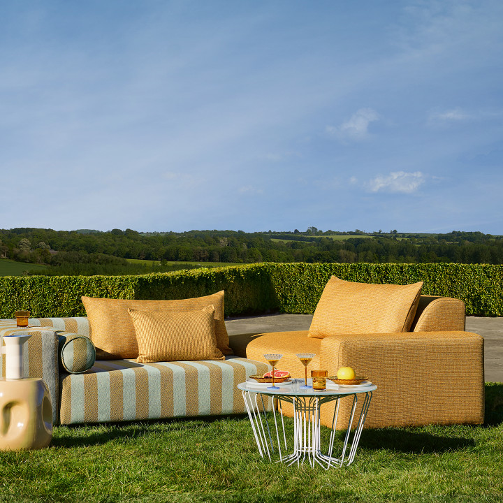 Conjuring thoughts of the perfectly straight lines of freshly cut grass, LAWN is a versatile stripe design woven from 75% recycled polypropylene. The three-dimensional pinstripes are created by a textural boucle yarn that stands proud of a smooth ground.